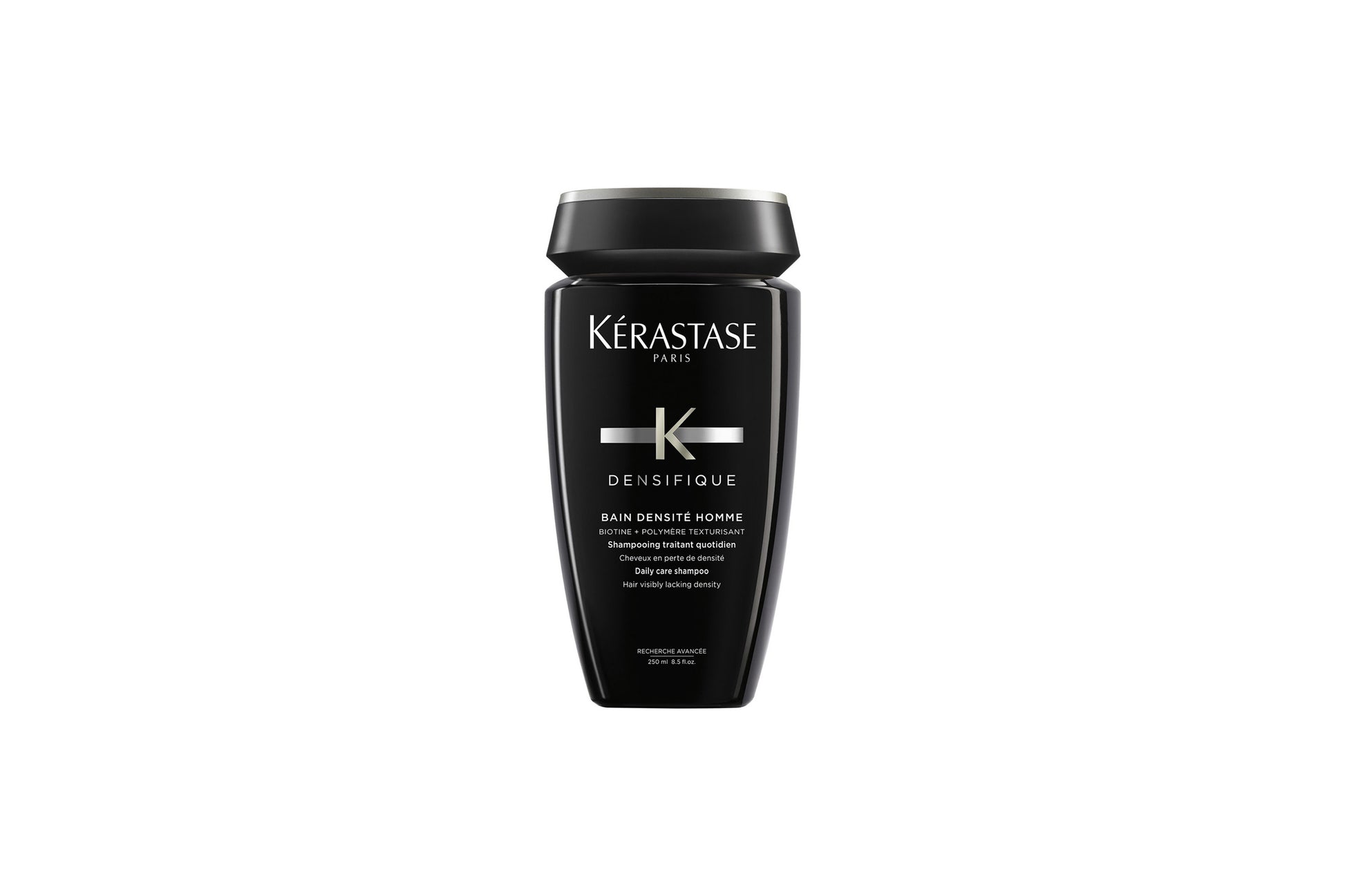Shampoo densificante para cabello con pérdida de densidad o adelgazado. Lava, corporiza, fortalece y densifica. El cabello queda revitalizado y ligero. Aporta volumen al cabello fino. Permite la frecuencia de uso diario. Fragancia masculina.