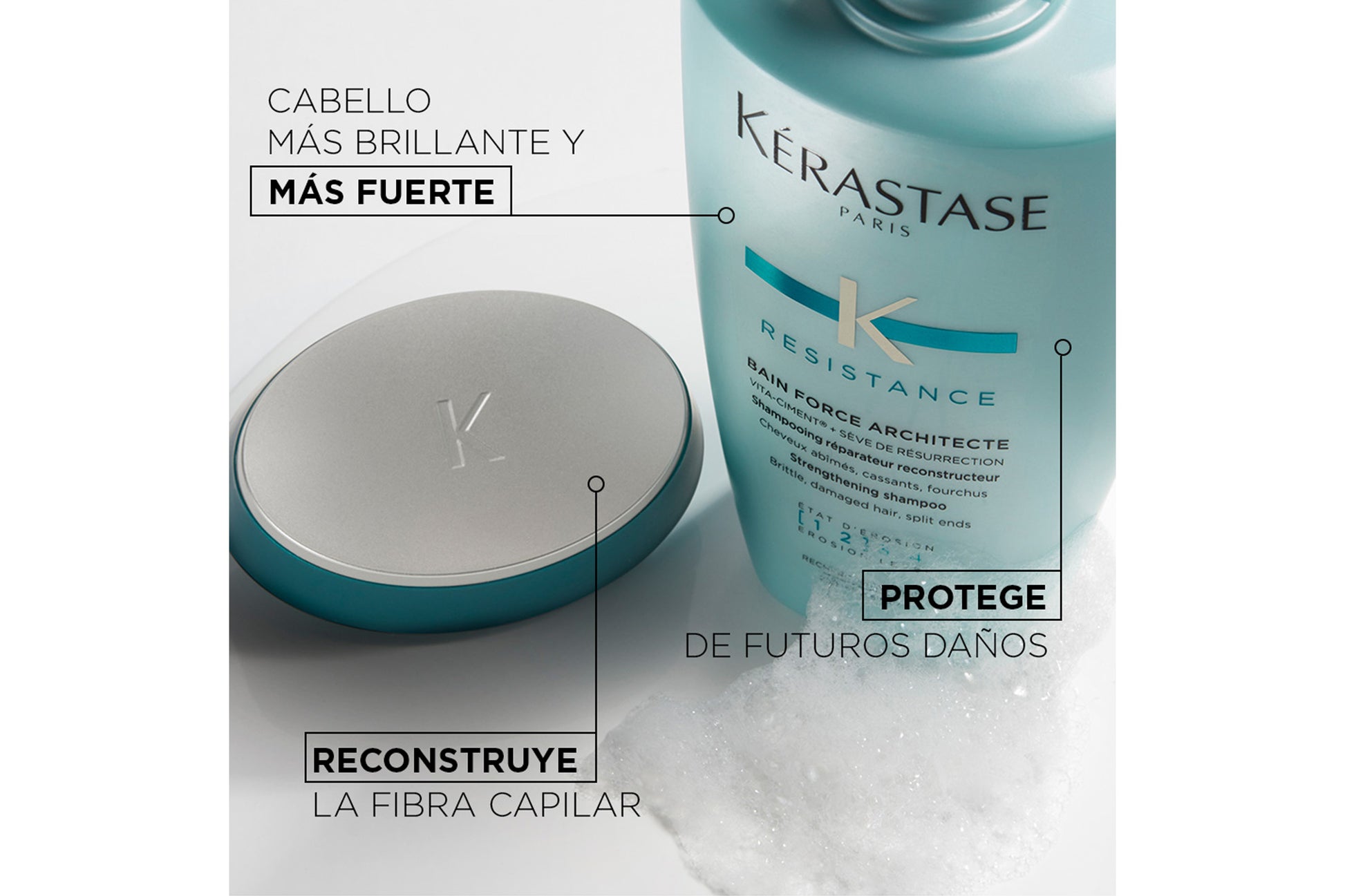 Bain Force Architecte es un shampoo diseñado para cabellos gruesos debilitados y dañados. Se puede usar a diario, reconstruye el cabello desde la fibra y lo protege de futuros daños.