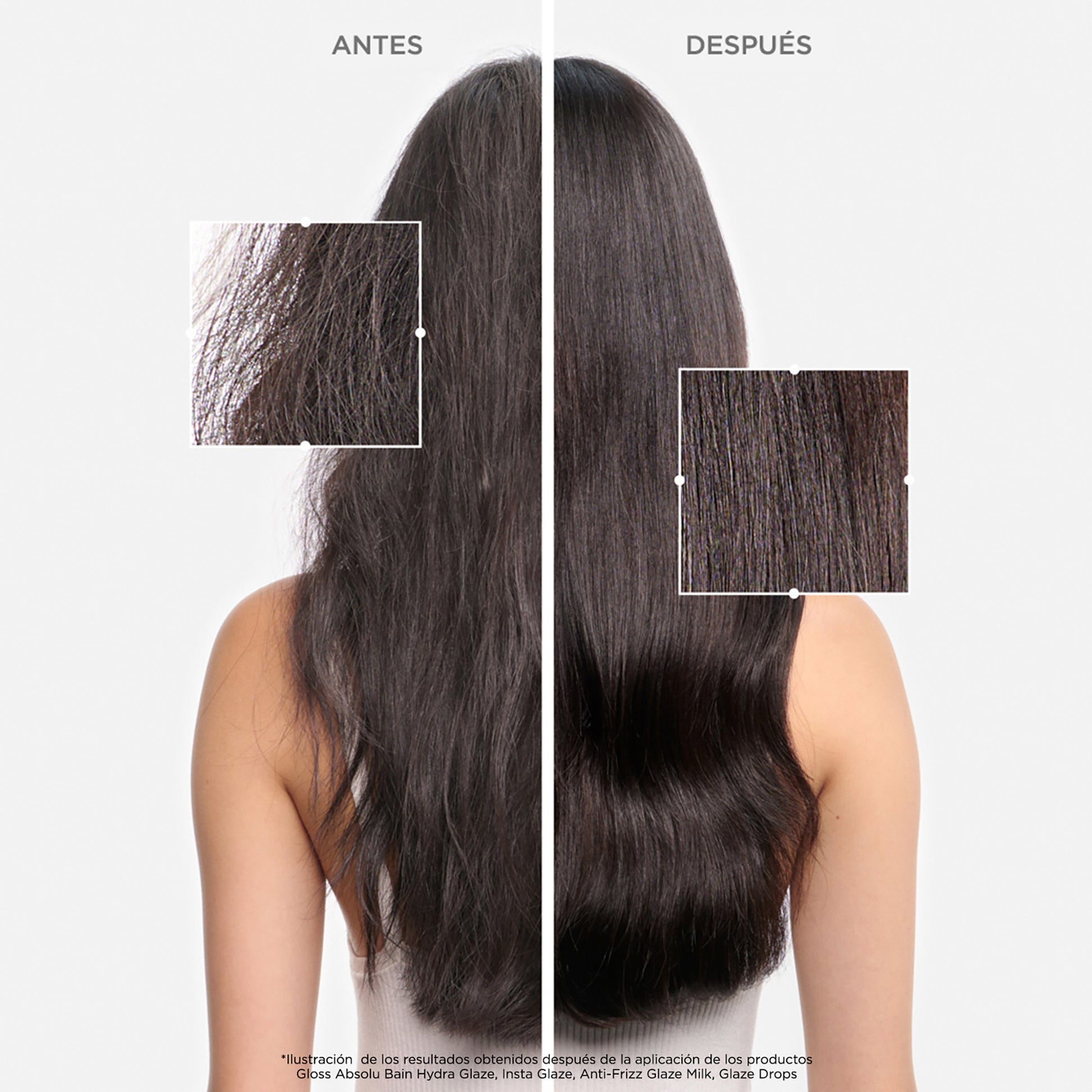 Sumérgete en un mundo del Gloss con Kérastase Bain Hydra-Glaze, un shampoo hydra-iluminador diseñado específicamente para cabello largo y propenso al frizz.