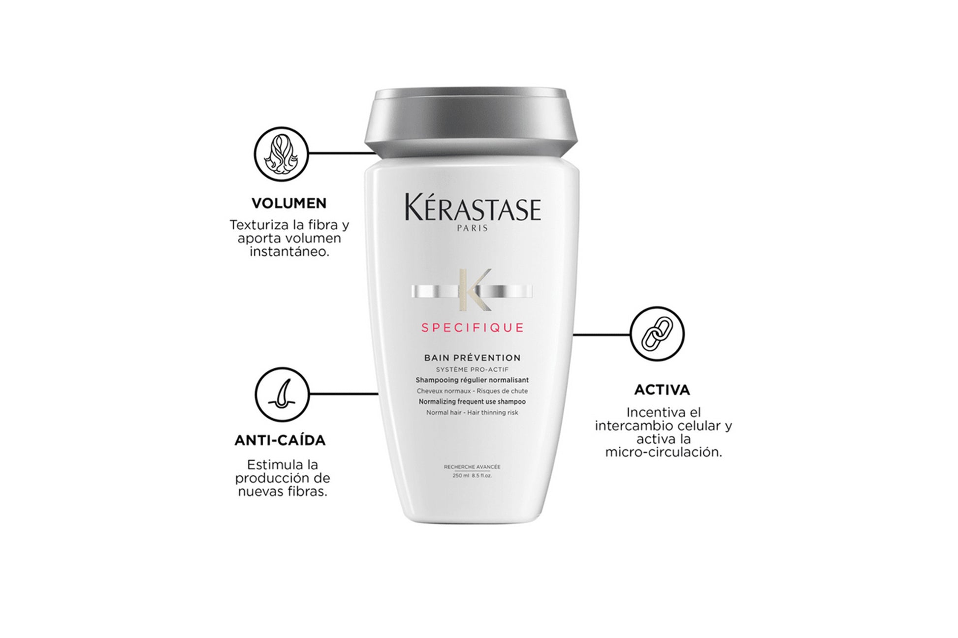Bain Prévention es un shampoo para prevenir la pérdida del cabello con propiedades estimulantes para potenciar la producción de la fibra capilar, fortalecerla desde la raíz y preparar el cuero cabelludo para el tratamiento.