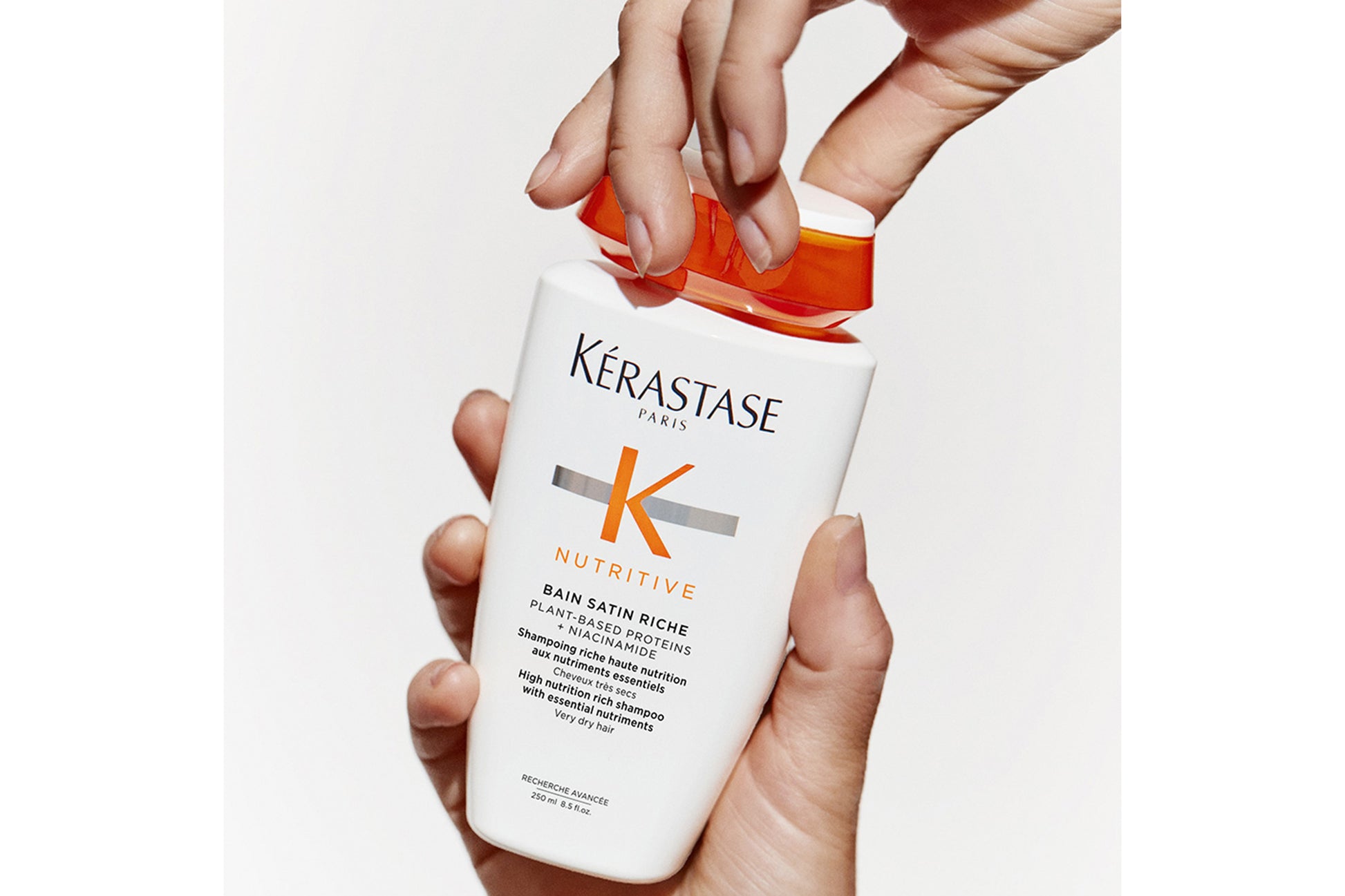 La fórmula de Bain Satin Riche actúa desde el cuero cabelludo hasta las puntas, reponiendo la humedad y el confort en el cabello. Su nueva fórmula incluye ingredientes inspirados en el cuidado de la piel que restauran el cabello seco y agotado a su vitalidad original. Además, la botella está fabricada con un 95% de plástico reciclado, lo que refleja el compromiso de Kérastase con la sostenibilidad