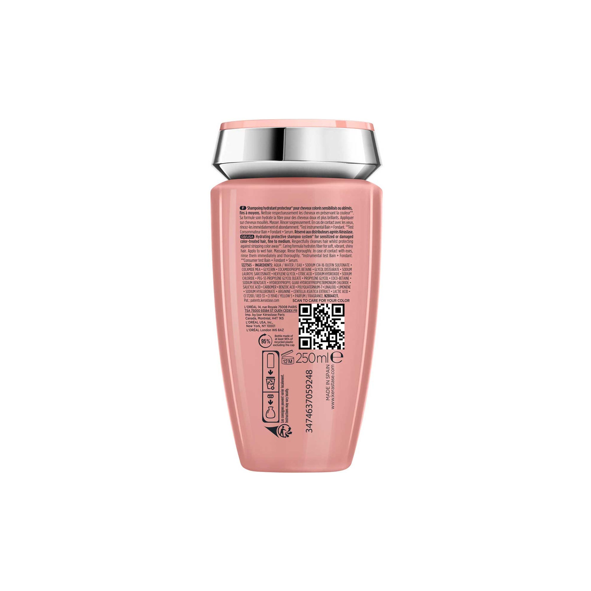 Bain Chroma Respect es un shampoo protector hidratante suave para todo tipo de cabellos tratados con color sensibilizado o dañado, en su mayoría adaptado para fibra fina a media. La fórmula altamente hidratante cuida el cabello respetando y preservando el color del cabello. Sin sulfatos.