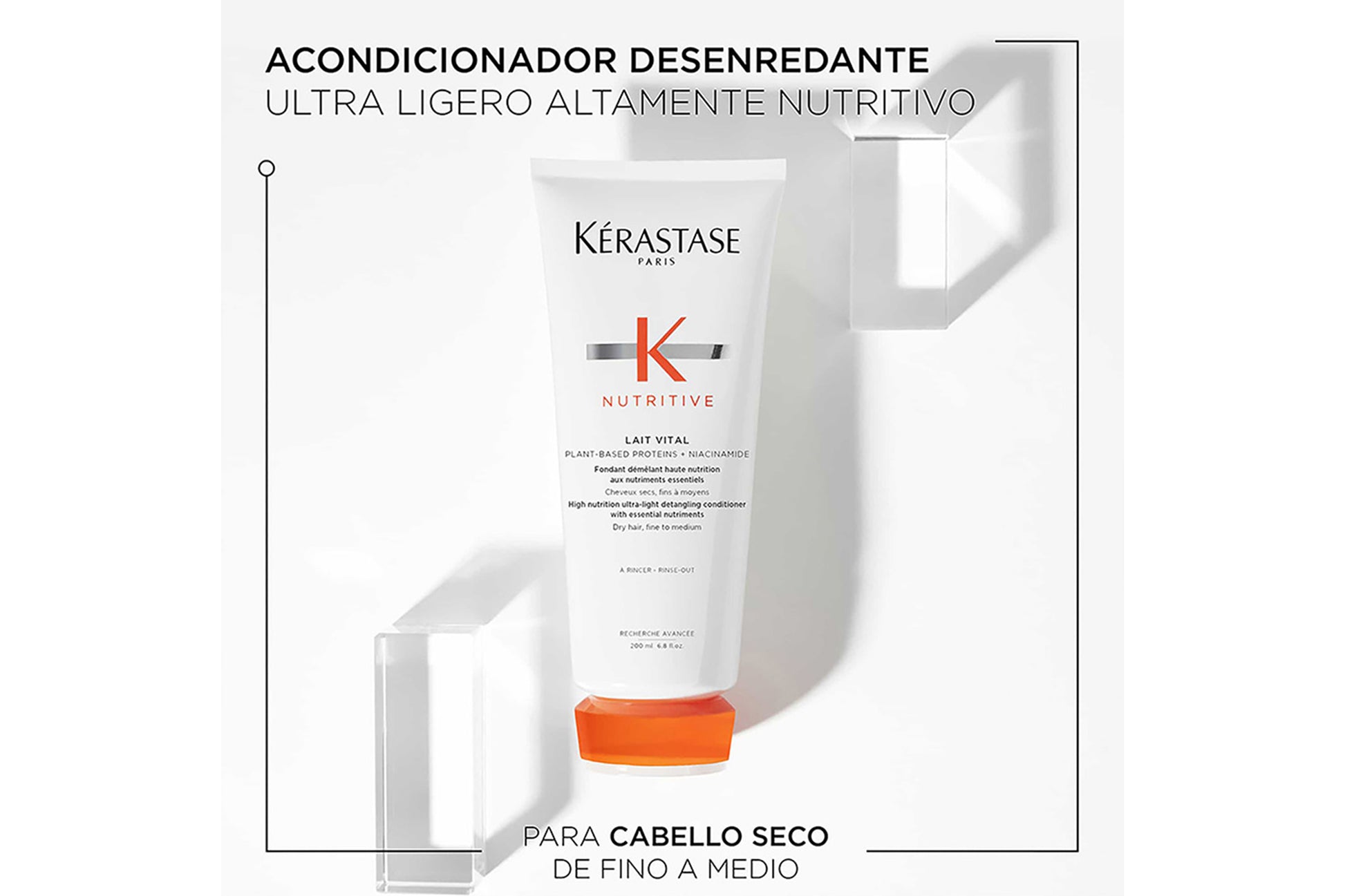 Lait Vital de Kérastase es un acondicionador desenredante ultraligero altamente nutritivo para cabello seco de fino a medio. Contiene lípidos nutritivos, vitaminas y polímeros anti-sequedad que brindan una nutrición intensa, desenredando y suavizando el cabello seco. Lait Vital está enriquecido con nutrientes esenciales que potencian la capacidad de la fórmula para nutrir y reforzar el cabello.