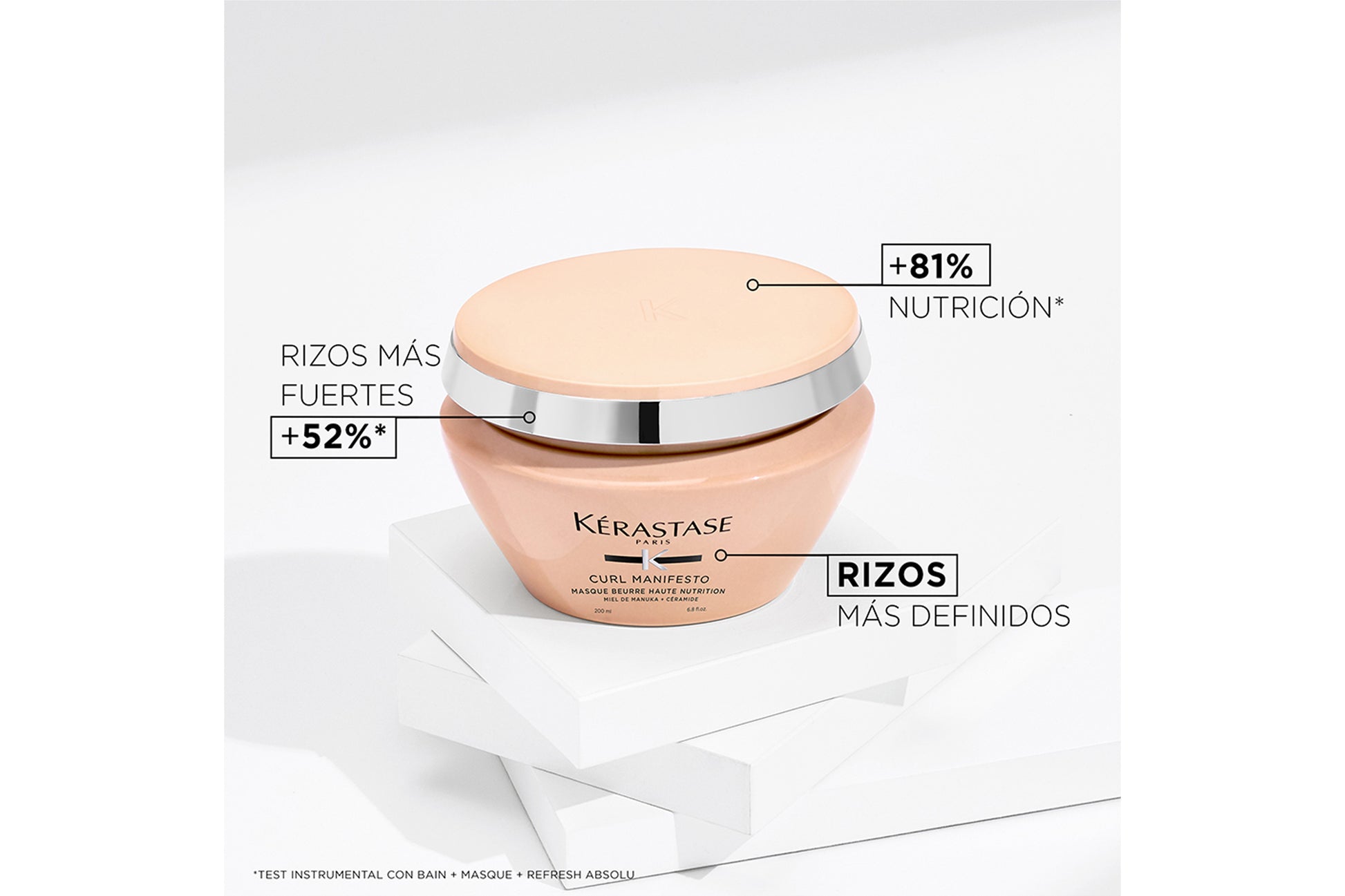 Nutre intensamente, favorece la elasticidad del cabello y refuerza los rizos debilitados para evitar su ruptura.