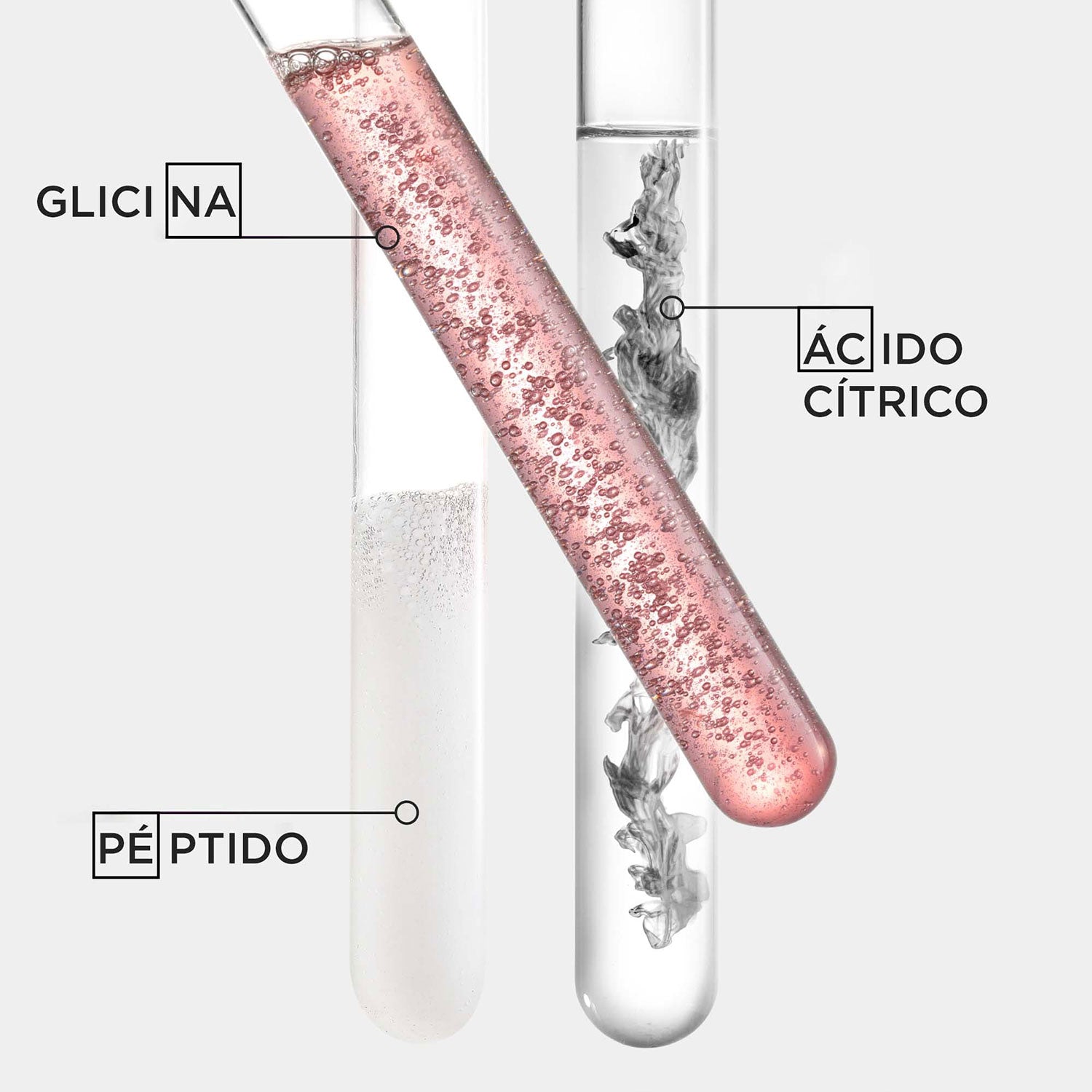 Ingredientes Principales: Péptido: cadena de aminoácidos que rellena la superficie del cabello. Glicina: una vez eliminado el calcio, este aminoácido penetra en la capa interna del cabello para repararlo en profundidad. Lista de ingredientes: Aqua / Water / Eau / Cetearyl Alcohol / Behentrimonium Methosulfate / Amodimethicone / Bis-Behenyl/Isostearyl/Phytosteryl Dimer Dilinoleyl Dimer Dilinoleate / Parfum / Fragrance / Behentrimonium Chloride / Lauryl Laurate / Caprylic/Capric Triglyceride / Butylene Glycol / Hydroxypropyl Starch Phosphate / Aminopropyl Dimethicone / Sodium Hydroxide / Phenoxyethanol / Isododecane / Hydrogenated Castor Oil/Sebacic Acid Copolymer / Limonene / Isopropyl Alcohol / PVP / Trideceth-6 / Hydrolyzed Vegetable Protein PG-Propyl Silanetriol / Glycine / Citric Acid / Linalool / Cetrimonium Chloride / Citral / Sodium Benzoate / Potassium Sorbate / Tocopherol